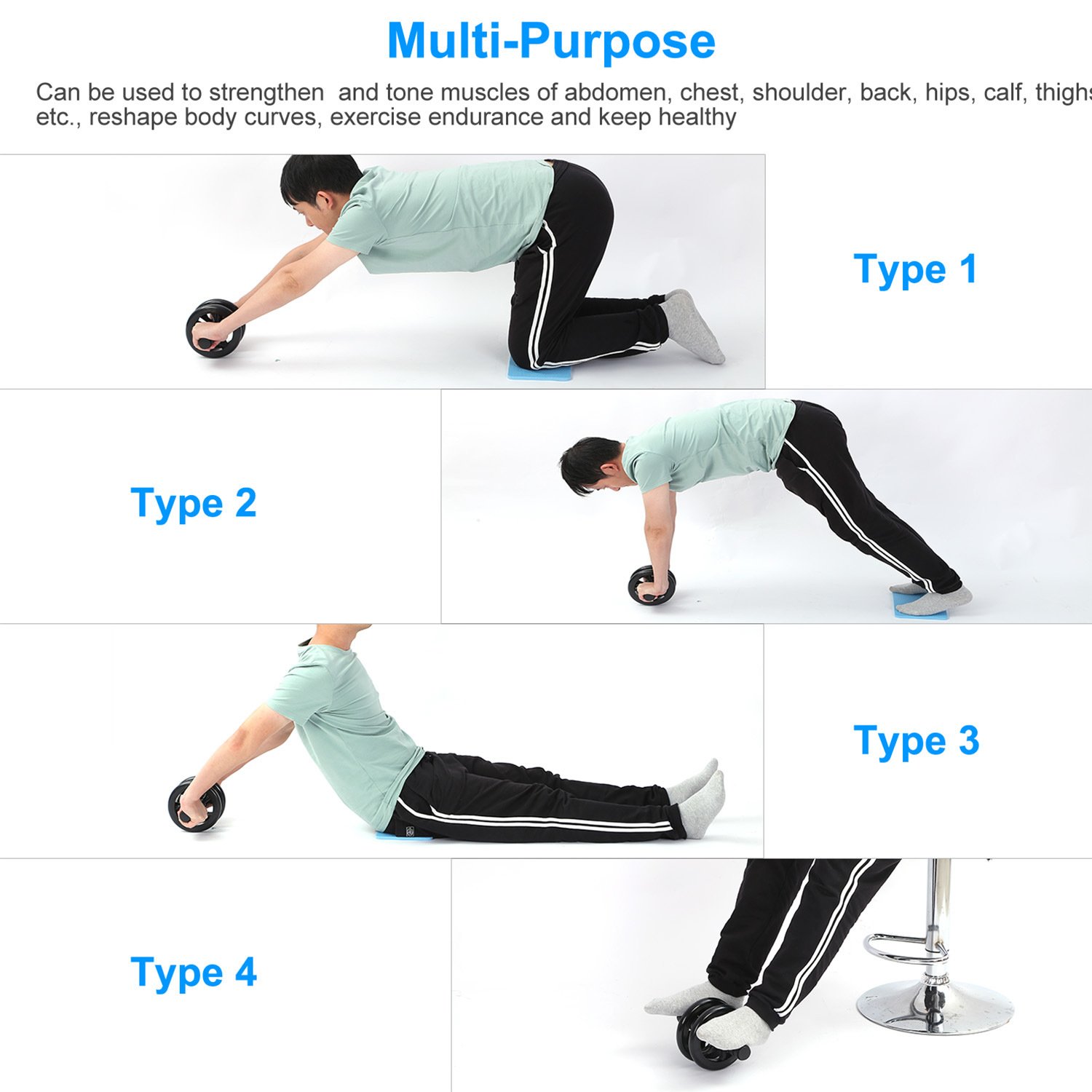 **MULTI-PURPOSE EXERCISE WHEEL*:Can be used to strengthen and tone muscles of abdomen,chest,shoulder,back,hips,calf,thighs,etc. Reshape your body curves,show your beautiful muscles,exercise your endurance and keep your fit with our useful exercise wheel!