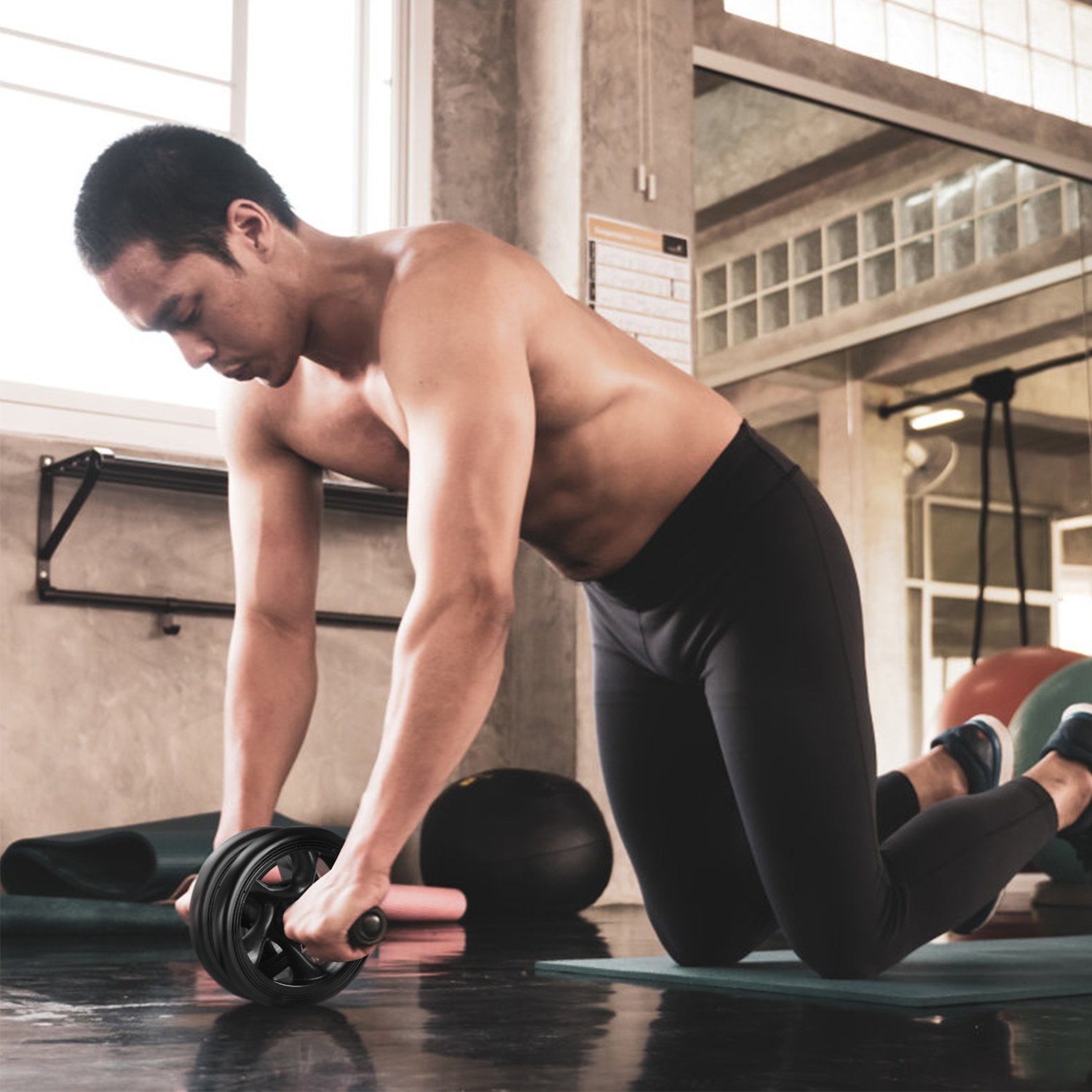 **TWIN 6INCH NOISELESS ROLLER WHEELS*:Equipped with two 6-inch-wide noiseless abrasion-resistant wheels to increase balance and stability and decrease injures during exercising. Besides,each wheel designs 5 sturdy spokes for even weight distribution.