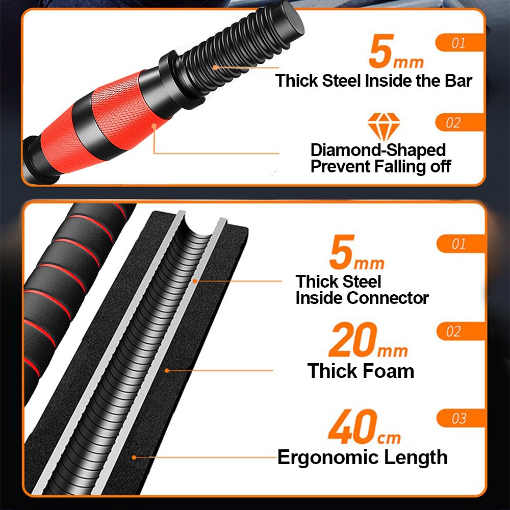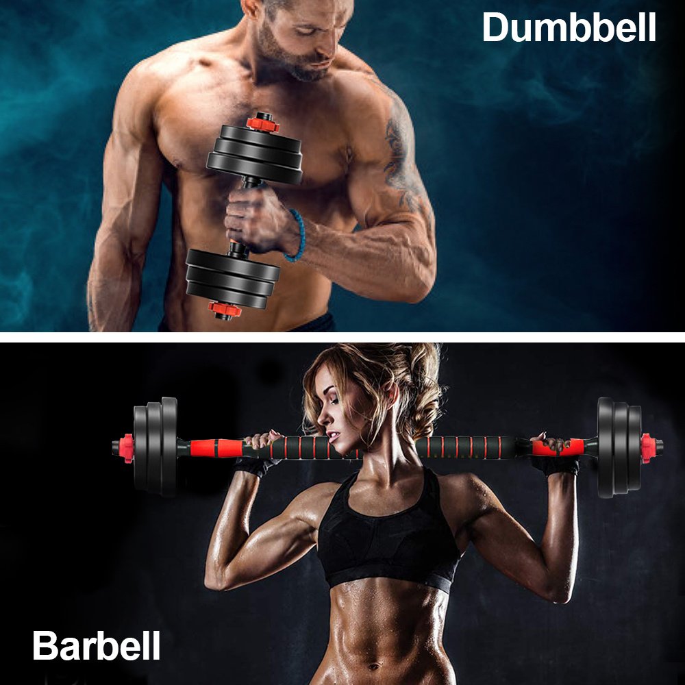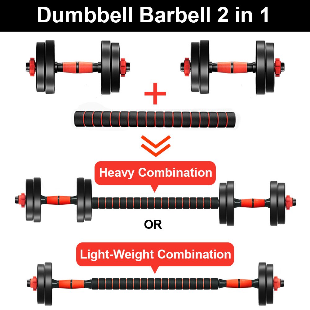 2 in 1 Multifunctional Dumbbell Set: The dumbbell set can be adjusted into barbell set easily with the central connector.Free combination is more convenient: the weight can be freely adjusted to suit the use of various forces.New environmentally friendly PVC material: wear-resistant and non-slip, better protection of the floor, 40cm thick foam connector, safe decompression plus non-slip, sweat-proof and comfortable handle, for pleasant exercise anytime, anywhereFor Sport Lovers: The barbell weight set is ideal fitness equipment for everyone who loves sports.It helps train your muscle, quads, glutes, abs, biceps.Simple assemble, small size, the best choice for home fitnessPackage Includes:1 x 40cm connector, 2 x 40cm dumbbell bar, 4 x nuts, 1.5KG x 4 + 2KG x 4 weight plates