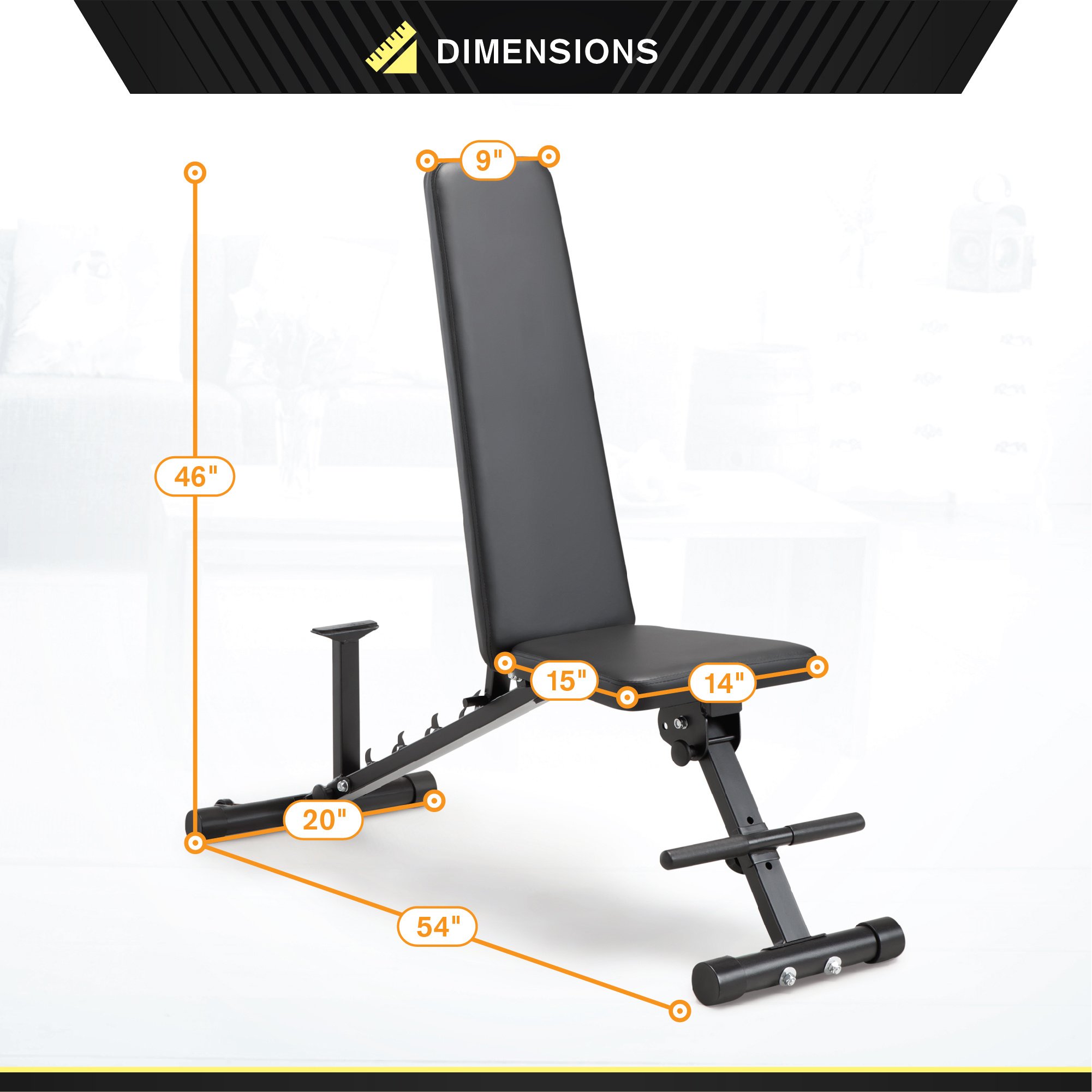 Enhance your physical condition while strengthening your body from the inside out with the Adjustable Utility Weight Bench. Work your way to a healthier body with this utility bench constructed from heavy-duty; powder-coated 14-gauge steel strengthened to withstand repeated use. This gym gear is made more convenient with wheels that generate ease of transport; allowing you to move the equipment from one place to another without lifting it. Partnered with a foldable structure; this apparatus allows for easy storage when not in use; so it won't take up too much space in your home. Experience comfortable training with this unit made with high-density foam that’s structured to support your back while performing exercises to prevent straining. It is reinforced with a leg anchor that can be adjusted to different levels when needed while providing you with safety by holding down your legs when training. The leg anchor can also be detached when not in use; so you won't have any hindrances when exercising. This utility weight bench features a smart design mechanized by an adjustable back pad and leg; allowing for multiple positions for a more targeted workout. It lets you perform different exercises that will strengthen your core and upper and lower body. Prep your body and condition your system for a productive workout.