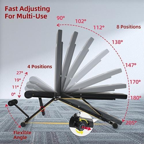 [ Fast adjustment with automatic lock ] ; Designed with 7 back positions and 3 seat positions for full body workout; You just pull the fast bolt; adjust the place which fit yourself and automatic lock