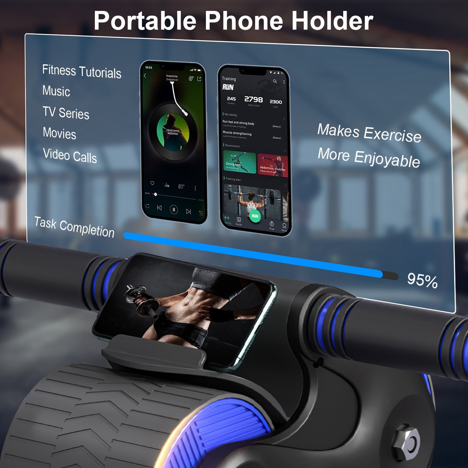 Automatic Rebound Abdominal Wheel Anti-slip AB Roller Wheel with Kneel Pad Phone Holder Home Gym Abdominal Exerciser for Men Women