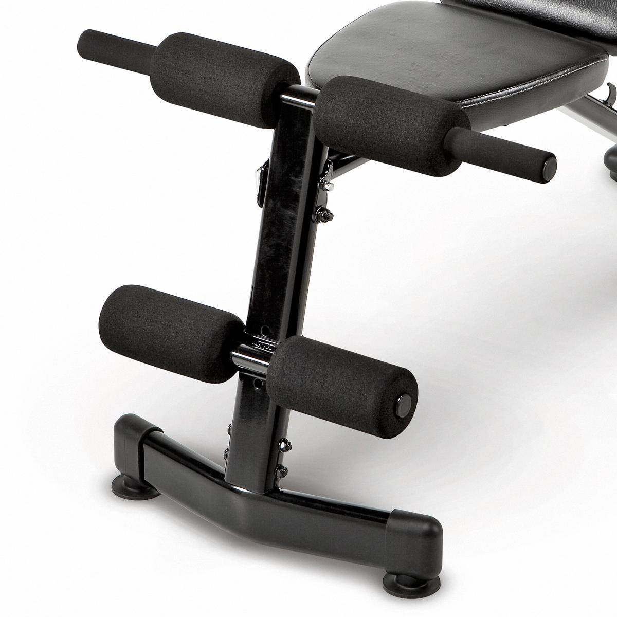 The Utility Bench; offers a multitude of exercise positions for toning and strengthening the whole body. It adjusts to perform upright; incline and flat exercises; such as sit ups; leg raises and more. In addition; it also comes with roller pads and an adjustable ankle pad. Made of heavy-duty steel; the frame is sturdy and durable. The compact size of the Marcy adjustable utility bench makes it easy to use in a variety of places; and it is also foldable for convenient storage.