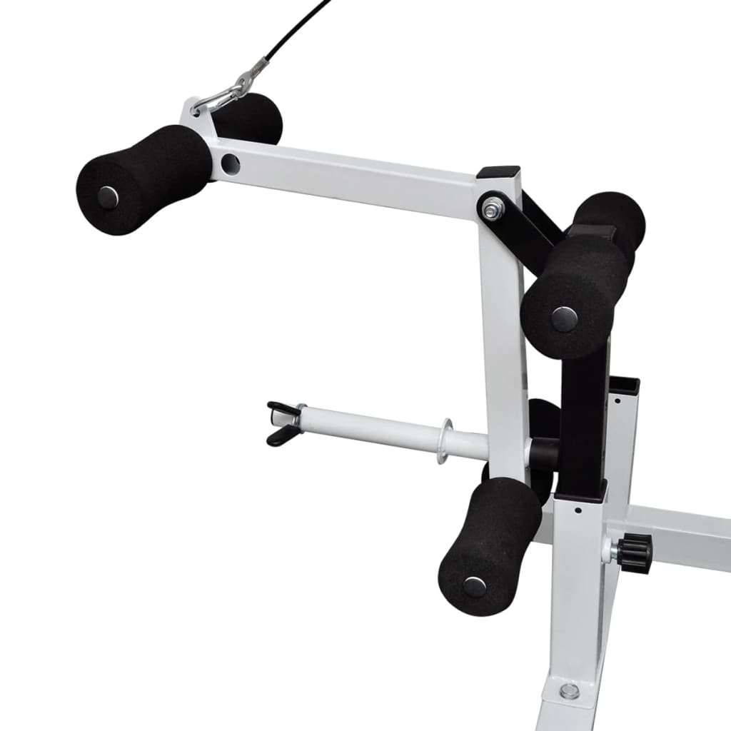 Arm Curl Cushion: 1' 5" x 11" x 1.6"Adjustable Levels of Arm Curl Cushion: 4 levels, Min. 2' 6", Max. 3'Adjustable Levels of Bar Support: 5 levels, Min. 3' 4", Max. 4' Main Tube: 1.96" x 1.96" x 0.06"Max. Bar Support Weight: 176.4 lbMax. Leg Extension Weight: 77.2 lbMax. Butterfly Arm Weight: 66.1 lbFabric: Polyurethane: 100%
