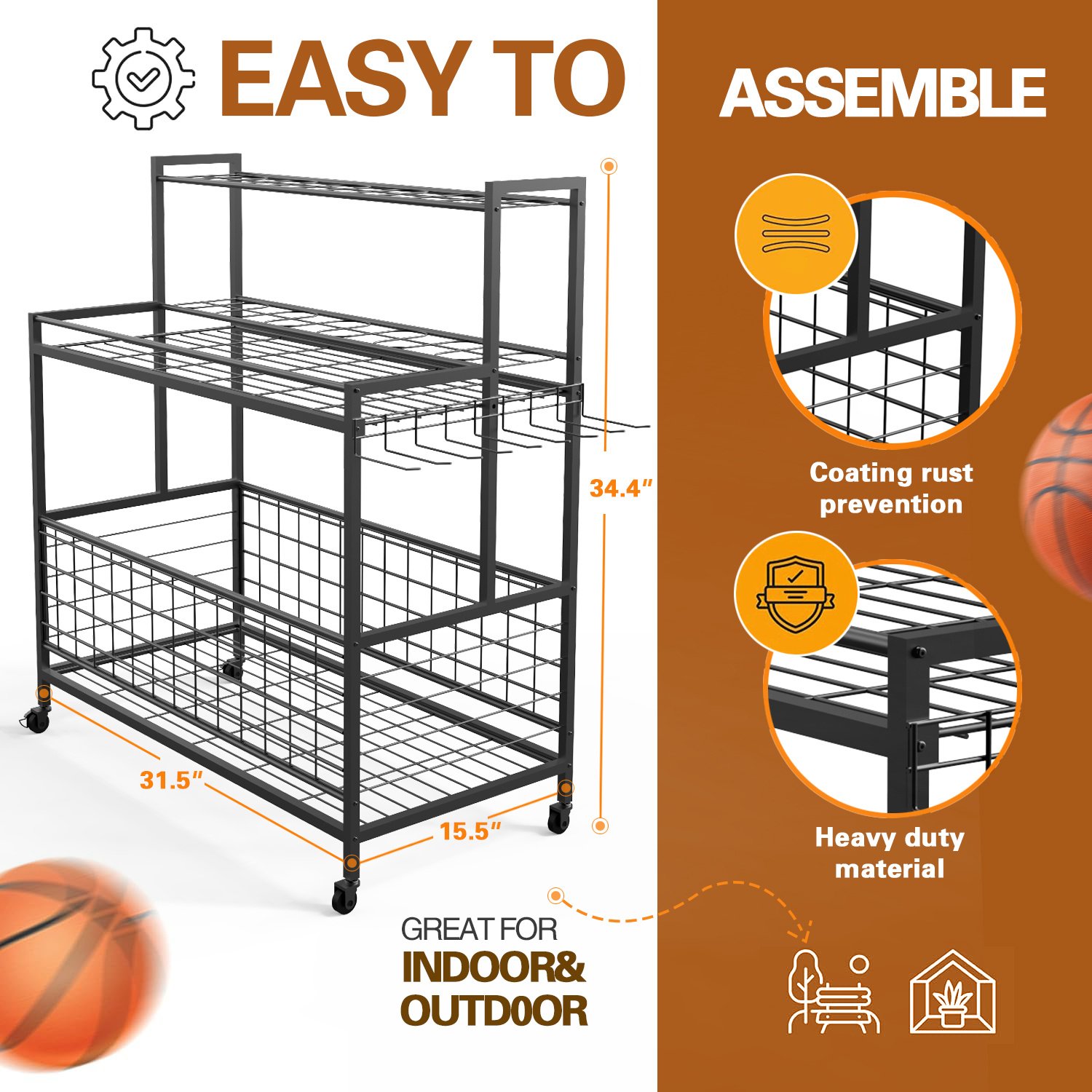 Durable Steel Structure: TECHVIDA's sports equipment organizers are made of durable coated steel frames and elastic bands, providing long-lasting strength and impressive performance.