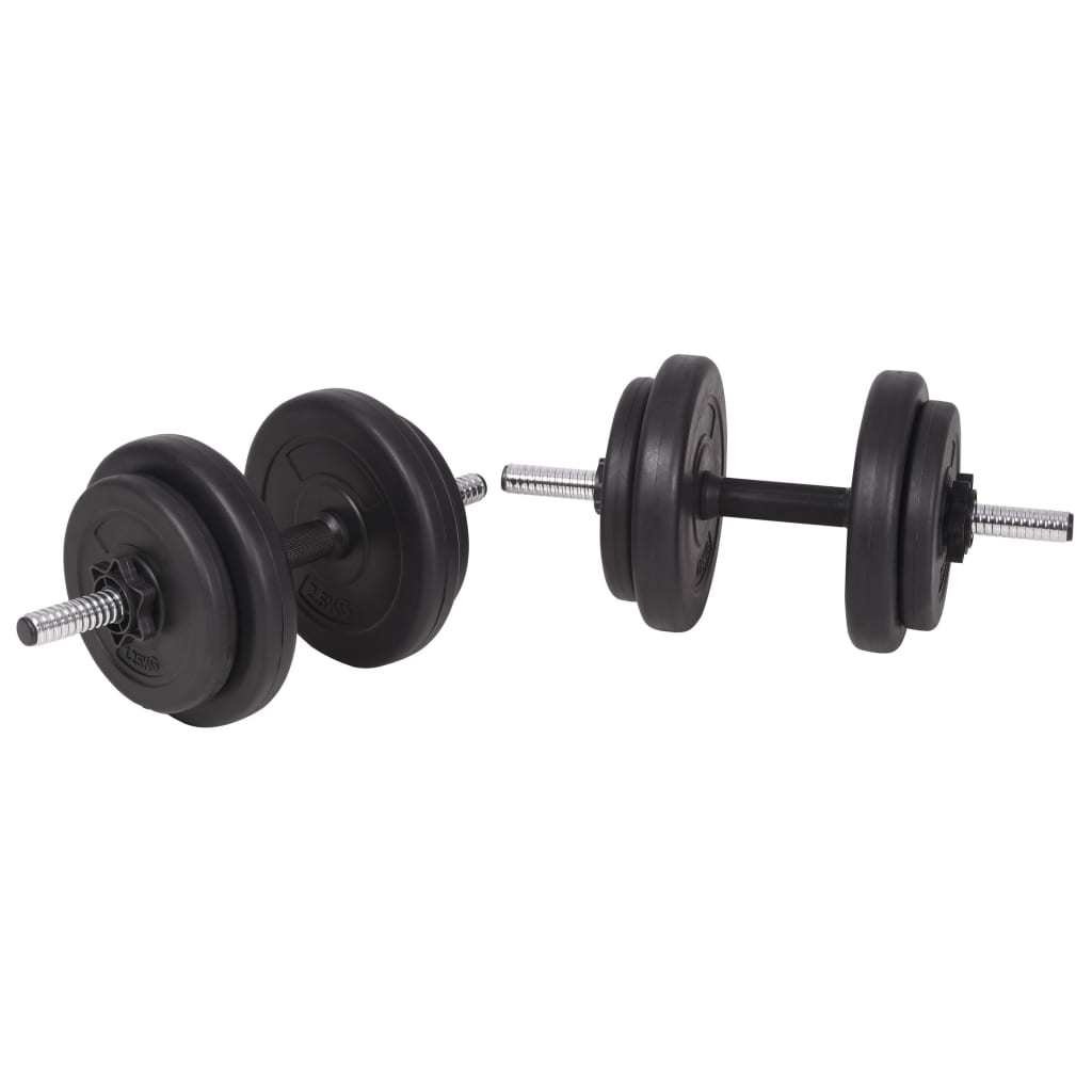 This versatile barbell and dumbbell set is perfect for chest, biceps, arms, triceps and back muscles. It includes two 33.1 lb plates, two 22 lb plates, two 16.5 lb plates, four 11 lb plates, six 5.5 lb plates, six 2.8 lb plates, two barbell bars and two dumbbell bars and has a total weight of about 264.6 lb.